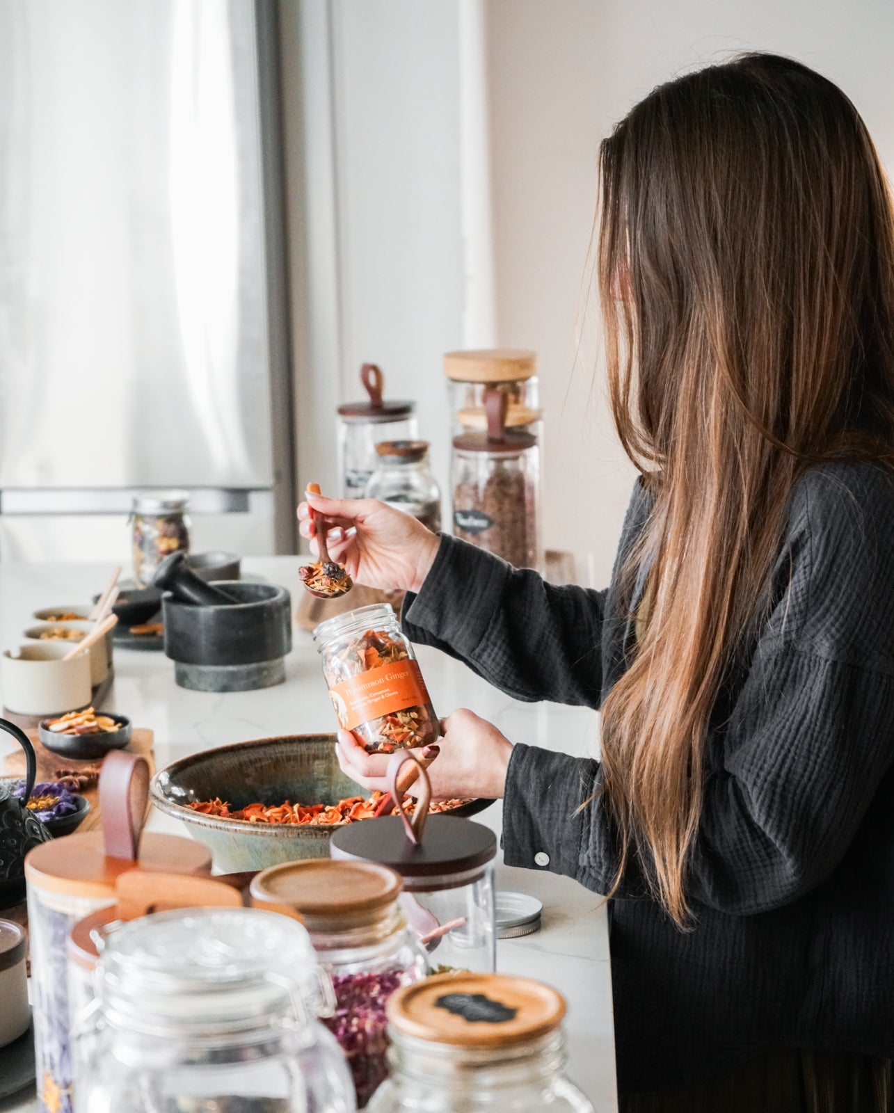 Every Ruya Tea blend is prepared in small batches using carefully selected herbs, flowers, and spices. Each jar reveals the beauty of whole botanical ingredients.